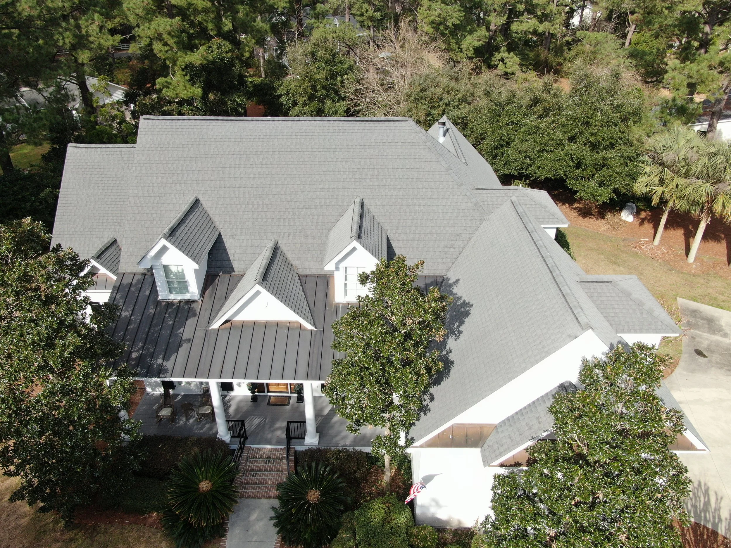 Explore our custom roofing projects, including modified rooflines, structural repairs, and unique blends of shingle and metal. Each roof is tailored to fit the home’s style and needs.